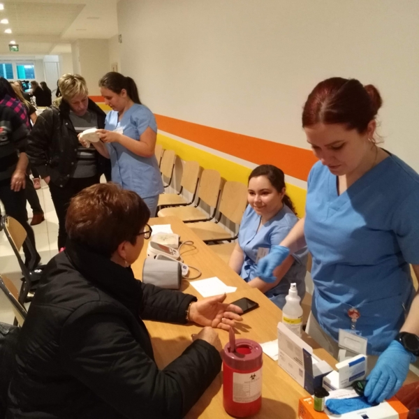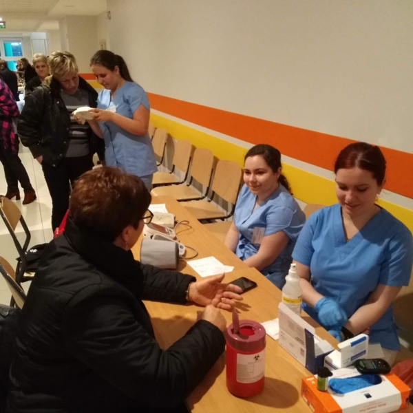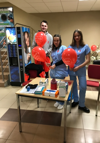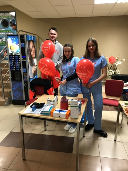 12 stycznia 2020 roku w Parku Wodnym Redzikowo oraz w Zespole Szkolno-Przedszkolnym im. Czesława Miłosza w Siemianicach podczas 28. Finału Wielkiej Orkiestry Świątecznej Pomocy studenci 1 i 3 roku Katedry Pielęgniarstwa oraz Ratownictwa Medycznego wzięli udział w zorganizowaniu stoiska pielęgniarskiego. Fundację wspieraliśmy świadcząc usługi pielęgniarskie w zakresie bezpłatnego mierzenia ciśnienia tętniczego oraz badania poziomu cukru, a także edukacji zdrowotnej.