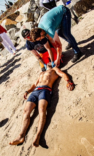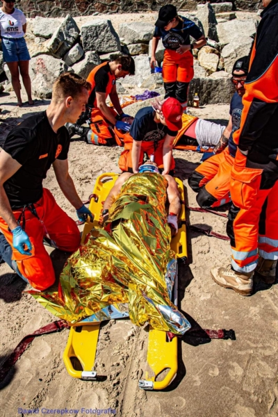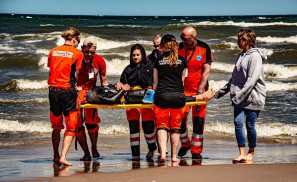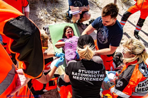 Studenci, poza czynnościami medycznymi, musieli wykazać się także sprawnościąw podejmowaniu poszkodowanego od ratowników wodnych, umiejętnością komunikacjiz pacjentem, opanowaniem silnych emocji u poszkodowanego, postronnych osób jak i swoich.