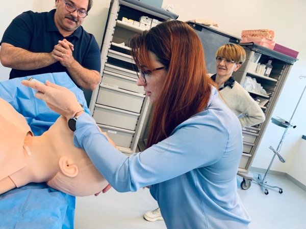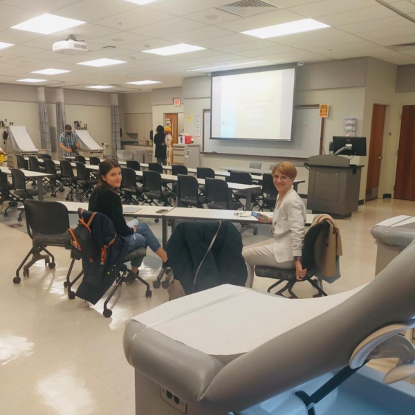 Kolejnym miejscem praktyki była School of Nursing, gdzie umożliwiono obserwację zajęć symulowanych na kierunku pielęgniarstwo. Dzięki współpracy z Panią Nancy Husson, stażystki miały możliwość zapoznać się z Debriefing for Meaningful Learning (DML).